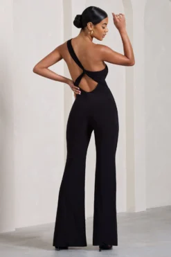 In The Dark | Black Sleeveless Asymmetric Flared-Leg Jumpsuit