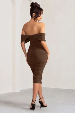 Be the first to review “Aliana | Mocha Asymmetric Midi Dress With Cape Sleeve” Cancel reply