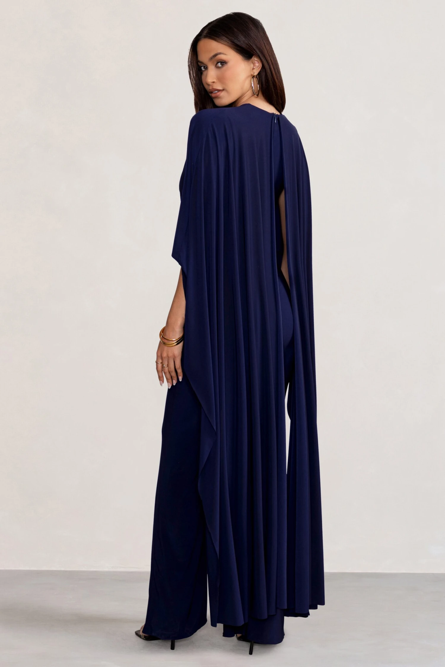 Anais | Navy Plunge Jumpsuit With Cape