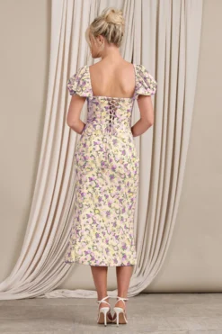 Cut from weighted cream satin in a theatric silhouette with plenty of draping, Grand Gift is the maxi dress to bring grandeur to any special occasion. This floor-sweeper sculpts your figure with a strappy corset that laces from behind. Also featuring a split fishtail skirt with a godet panel for added opulence, this long cream dress is certainly a fine option for wedding season.