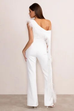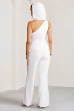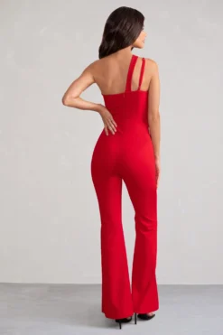 Aurora | Bottle Green Velvet One Shoulder Cape Sleeve Jumpsuit