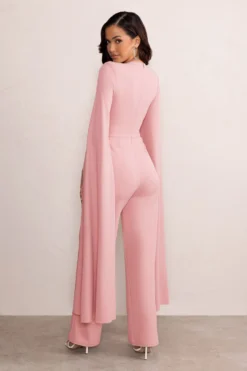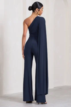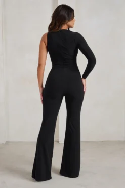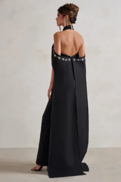 Angel | Black High Neck Jumpsuit With Cold Shoulder Cape Sleeves