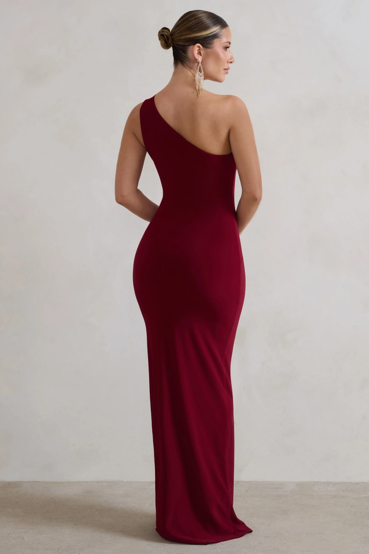 Party season is fast approaching and Club L have you covered with this rich red maxi dress. Known as Kary, the formal wardrobe staple arrives in premium stretch jersey to cinch your waistline and contour every curve. A high hem split brings a scandalous touch to this asymmetric maxi but Kary would still suit a sophisticated setting.