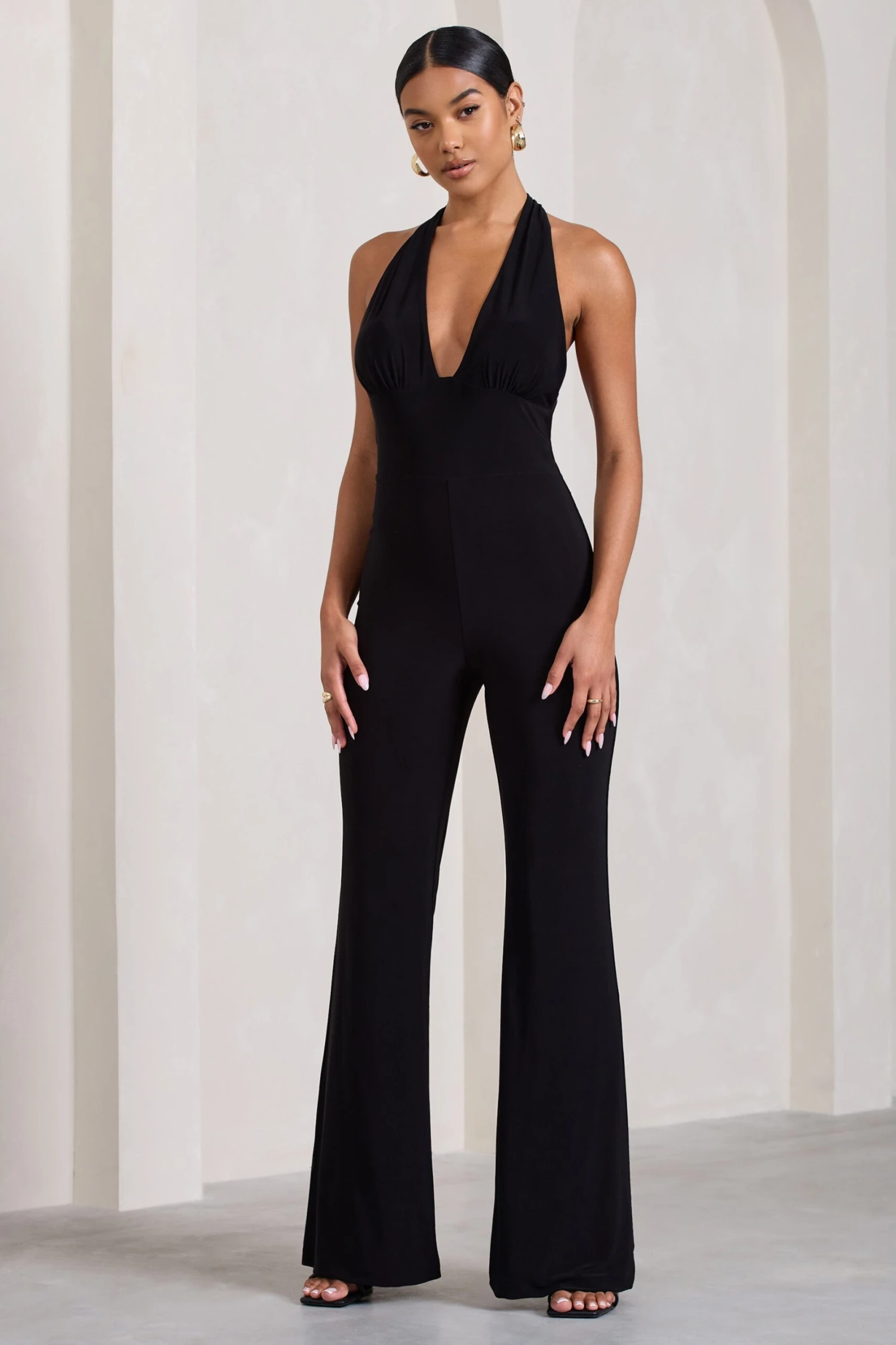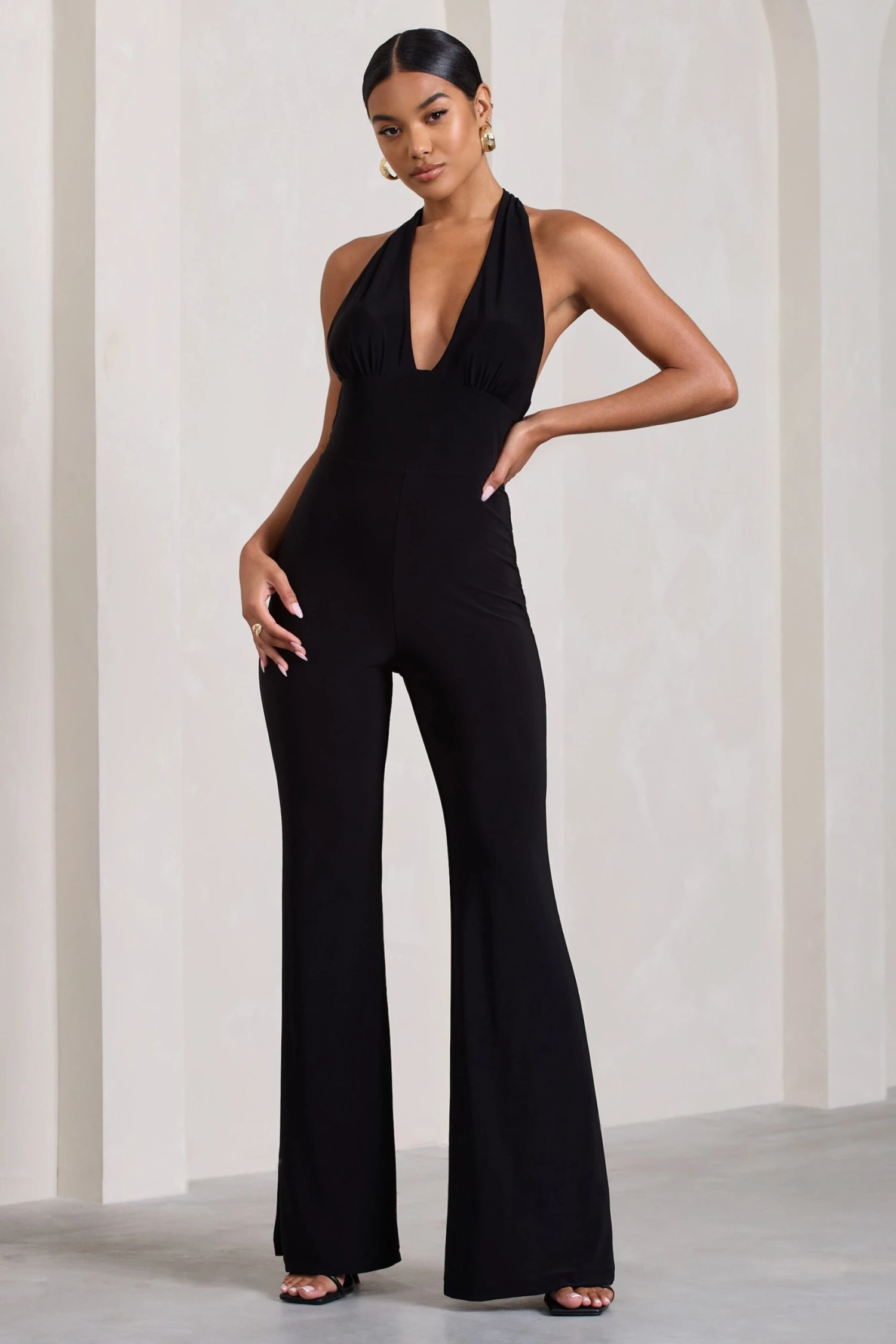 Spice up your wardrobe this season with Lexie. This flared jumpsuit is made from a luxurious black jersey with the purpose of defining your feminine features. Our sleeveless jumpsuit is finished with adjustable straps that interrupt an open back.