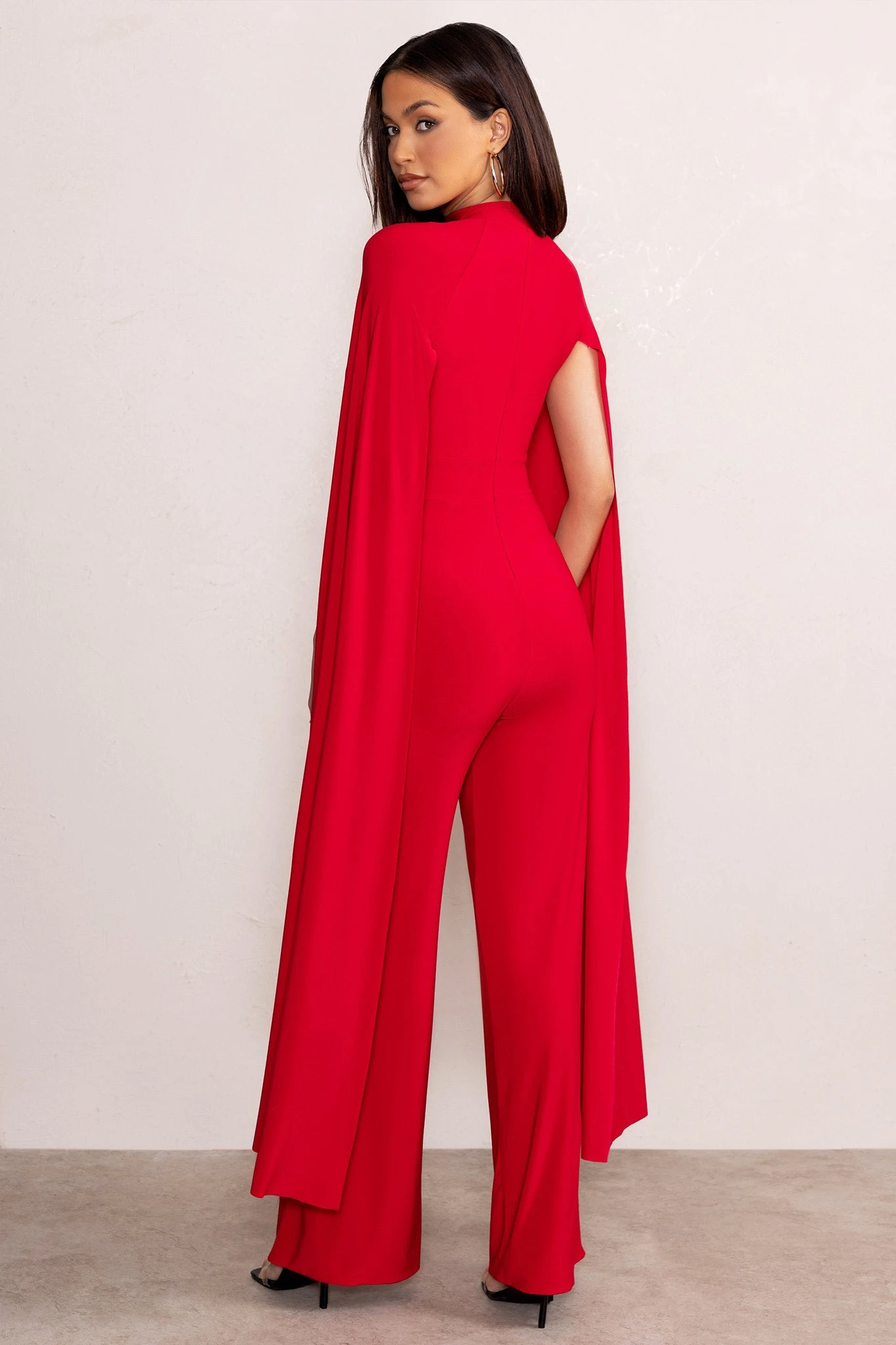 Take occasion dressing to new heights with our stunning Louisa jumpsuit. Crafted from premium, ultra stretch, jersey in a deep red hue, this jumpsuit will contour your curves while the straight-leg design that will elongate your legs. The long cape sleeves frame the plunging neckline for a balanced look. For that special occasion that is around the corner, our Louisa jumpsuit is the one!