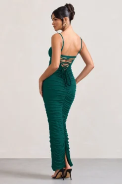 Despite this design’s demure name, our Love Shy dress is made to be seen, boasting a bodycon silhouette made from premium stretch jersey in proud peacock blue. This floor sweeper is made all the more theatric by a plunging sweetheart neckline held from fine cami straps and statement thigh split. Pair this must-have maxi with diamond hoops for a party look worthy of attention.