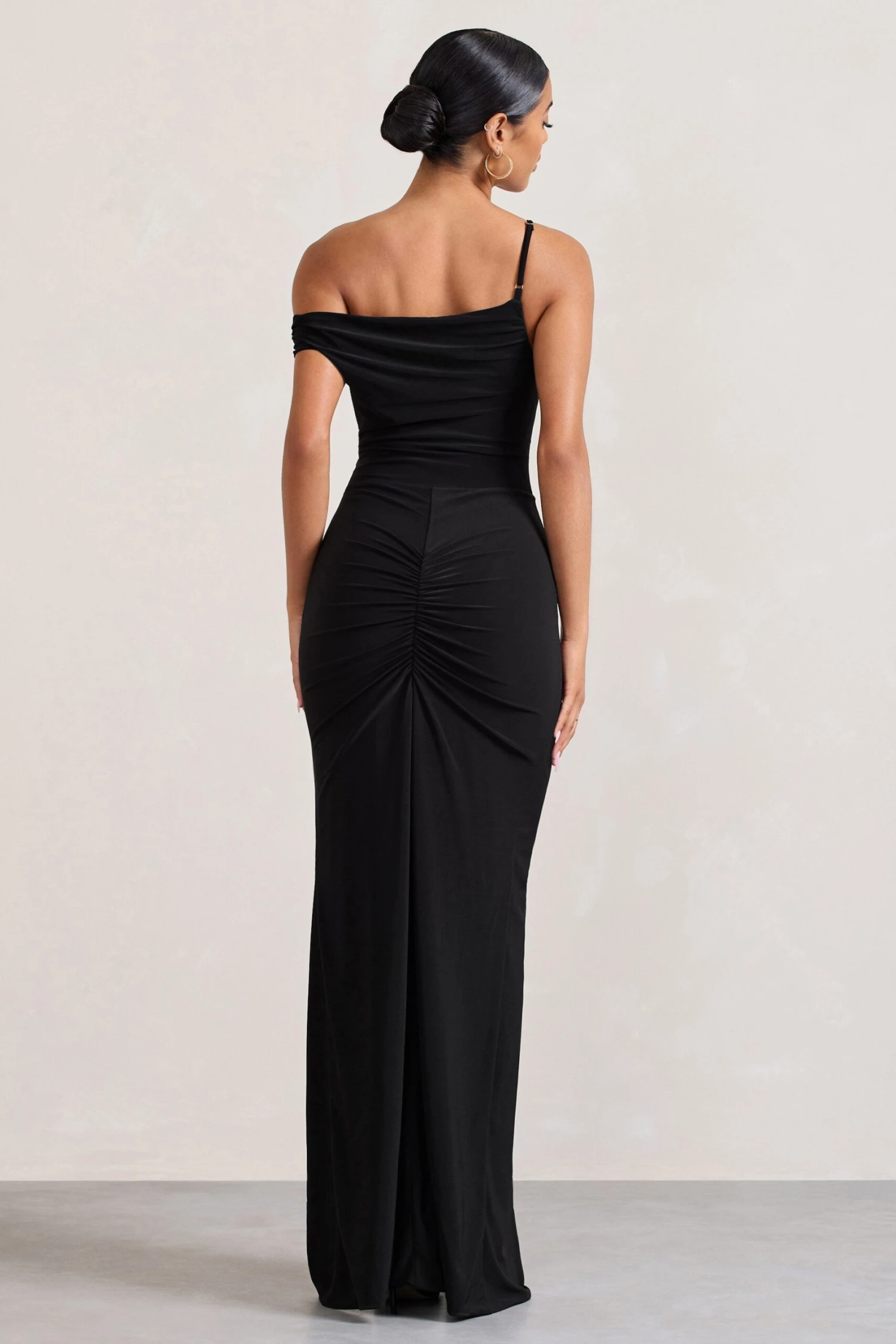 Meet On Film, our one-shoulder maxi dress perfect for any black-tie occasion. This black piece was expertly cut from a premium stretch jersey that clings to each curve and is finished with a flattering ruching detail. Try pairing On Film with gold hoops to elevate your look.