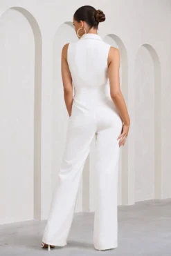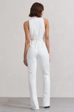 Don’t Cross Me | Stone Halter Neck Tailored Buttoned Sleeveless Jumpsuit