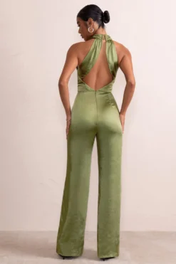 Show Up | Bottle Green Wrap Front Jumpsuit With Mesh Sleeves