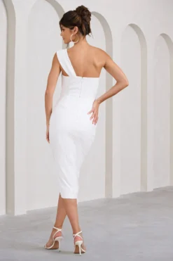 Dominique | Grey One Shoulder Cape Sleeve Bodycon Maxi Dress